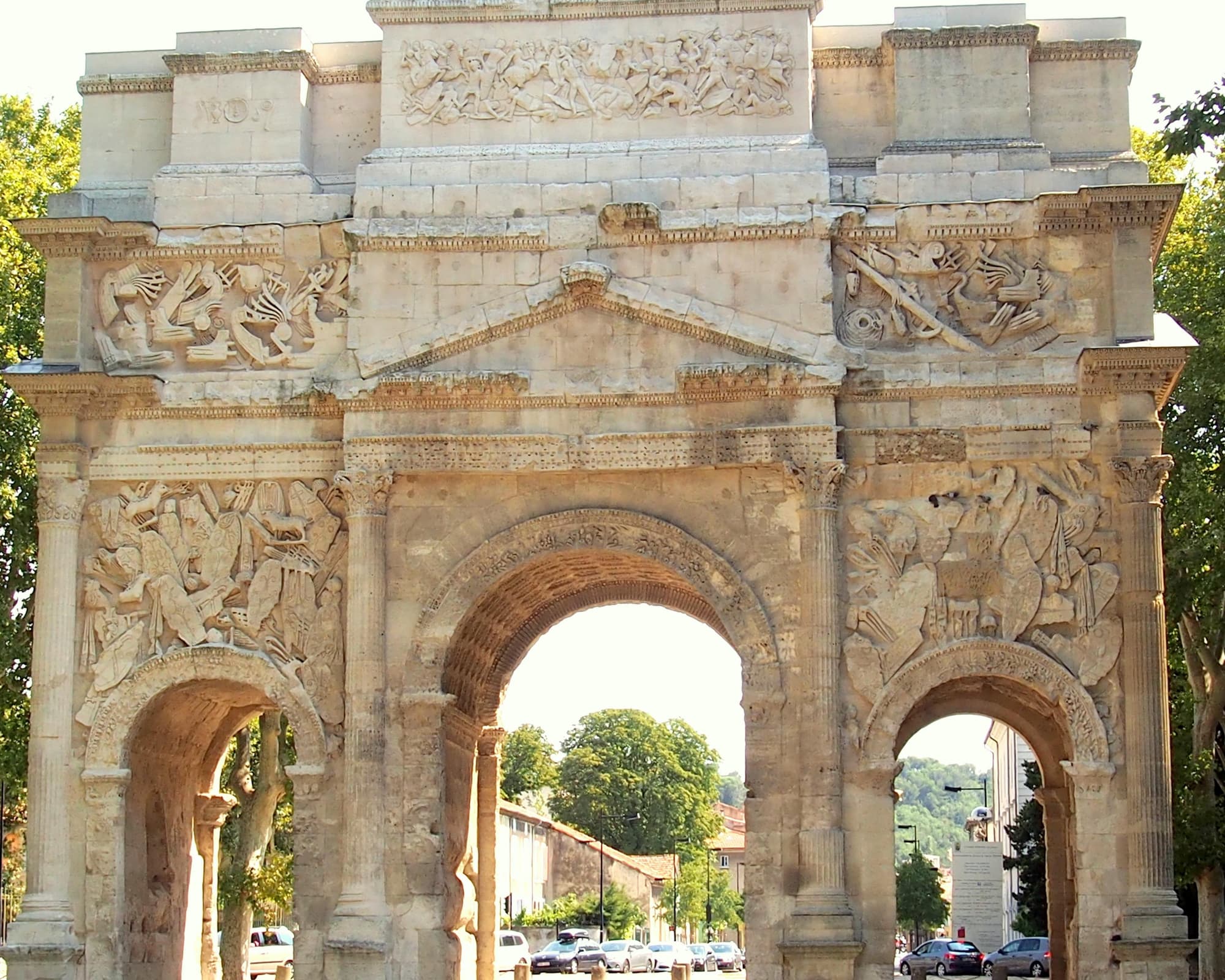 About the destination: Orange in French and officially Aurenja in Provençal Occitan, is a French town and commune in the Vaucluse department in the Provence-Alpes-Côte d'Azur region of France. Called "Cité des Princes" (City of Princes), it is the former capital of the Principality of Orange. It has a population of 30,025 inhabitants (in 2007) called "Orangeois". Its economy is based on several sectors: viticulture (with controlled appellations of origin), industry (Saint-Gobain factory), services and commerce, and the army. It is about 21 km north of Avignon. It covers an area of 7,420 hectares and has an average altitude of 50 metres above sea level.